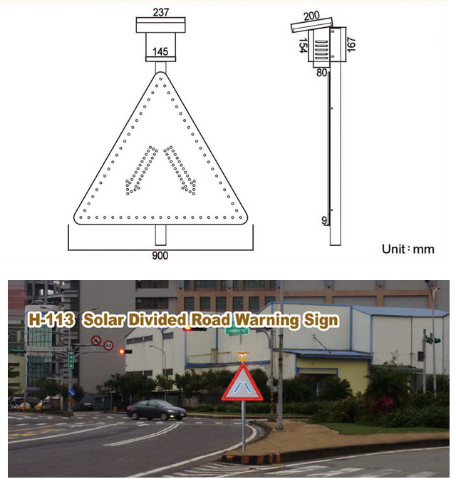 Home Page Services Solar Traffic Products Solar divided road warning sign